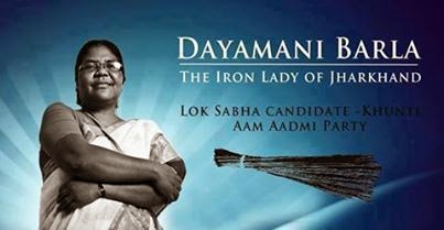 झारखण्ड के खूंटी लोकसभा सीट पर जैसे जैसे मतदान की तारिख नजदीक आ रही है, खूंटी में चुनावी सक्रियता बढ़ती जा रही है। शहरी और ग्रामीण क्षेत्रों में फर्क भी बढ़ता जा रहा है। जहां एक ओर शहरी क्षेत्रों में झारखण्ड पार्टी, भाजपा और कांग्रेस ने झंडे और पोस्टरों से पूरा बाज़ार पाट दिया है, वहीँ दूसरी और आदिवासी बहुल ग्रामीण क्षेत्रों में ‘आप’ पार्टी की प्रत्याशी दयामनी बारला छोटी छोटी सभाओं और घर घर मुलाक़ातों के मार्फ़त अभियान में सक्रीय हैं। अभी तक दयामनी बारला को कोयल कारो जन आंदोलन, जिंदल-मित्तल विरोधी मंच, काँटी बांध विरोधी आंदोलन, तजना बांध विरोधी आंदोलन, रियरगाडा बांध विरोधी आंदोलन, सी पी आई, सीपीएम, भा क पा माले और महिला मंडलों का समर्थन हासिल हैं।