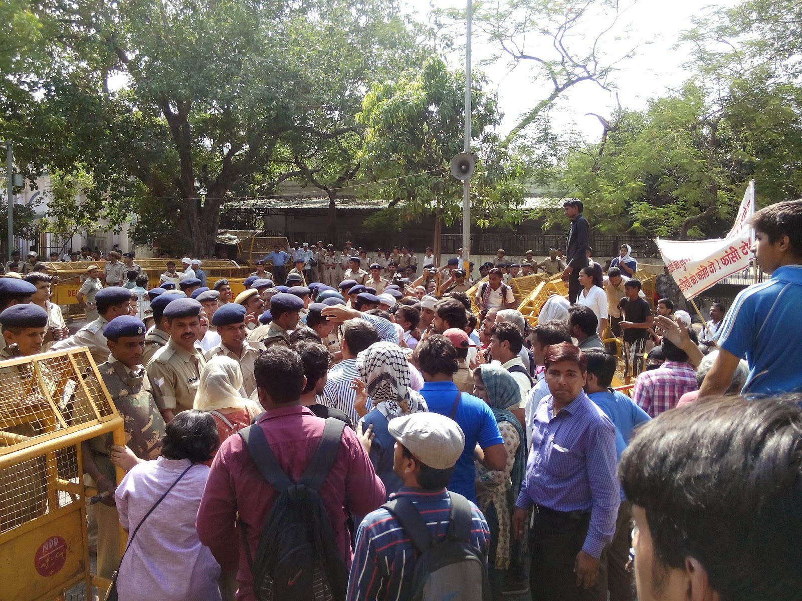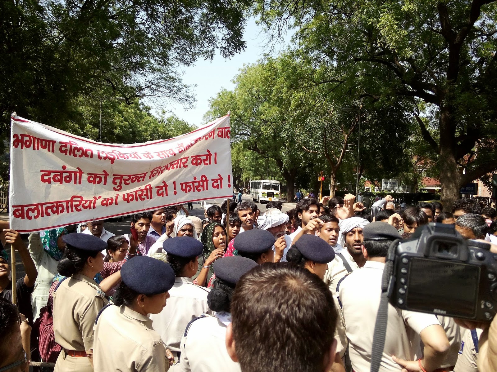 Condemned the police brutality against Bhagana Kand Sangharsh Samiti!Uphold the struggle for right to protest!On 23 March four Dalit girls of Bhagana village in Hisar, Haryana were abducted and gang raped by five young men of the dominant caste – Jats – recently included in the Central list of Other Backward Classes or OBCs. Two days later, on 25 March the girls were found in an unconscious state at the railway station in Bathinda, Punjab. They were then taken back home by their respective families. After several attempts in Haryana at bringing the guilty to justice, where their voices were ignored by the state administration they were forced to move the struggle to the capital city. For more than a month they have been sitting on a dharna at Jantar Mantar under the banner of Bhagana Kand Sangharsh Samiti. This case of Dalit atrocity in Haryana has, however, failed to become national news in the sold out corporate media.They, along with other left and progressive groups and members of civil society, have all the right to protest against atrocities on Dalits and other marginal groups. However, that is not how the State wishes to see it.