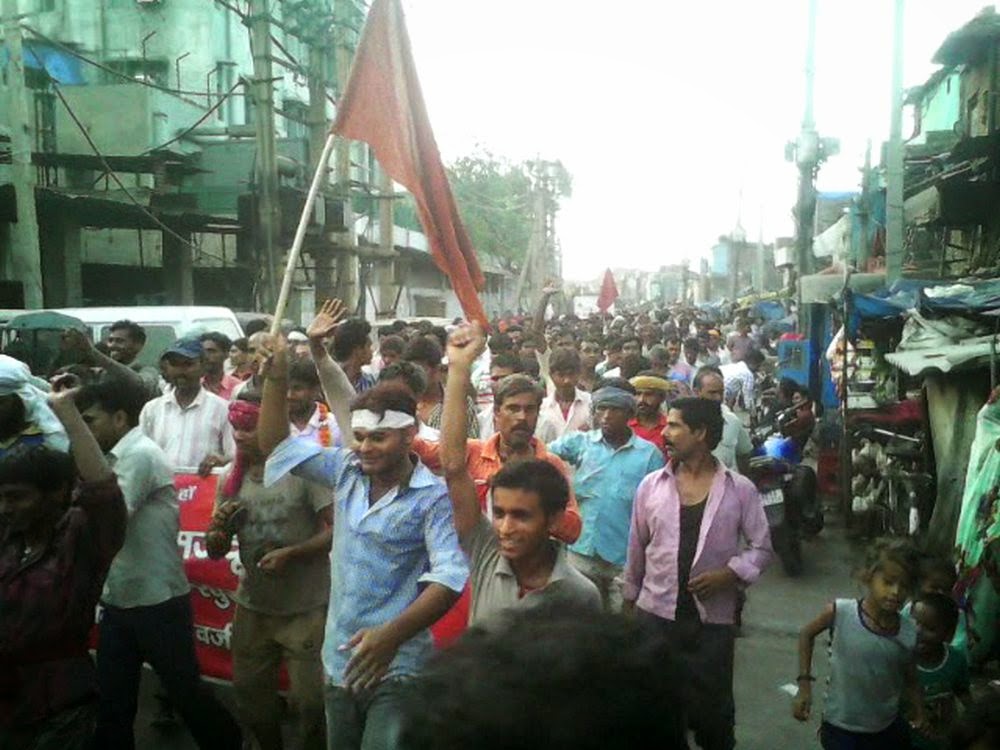 विजय जुलुस गौरतलब है कि पिछले 22 दिनों से दिल्ली के वजीरपुर इलाके के गर्म रोला मज़दूर अपनी संवैधानिक कानुनी मांगो को लागु करवाने के लिए हड़ताल पर थे। इस बीच मालिकों ने अलग अलग तरीके से हड़ताली मज़दूरों को तोड़ने की कोशिश की। मजदूर नेताओं को झूठे आरोपो में गिरफ्तार करवाने की कोशिशों से लेकर हड़ताल को लम्बा खीचकर मज़दूरों को भूख से तोड़ देने जैसे अनेक तरीके अपनाये। पर मज़दूरों द्वारा इसका संगठित प्रतिरोध, हड़ताल के दौरान सामुदायिक रसोई चलाना आदि ऐसे हथियार साबित हुए जिसके सामने मालिकों को झुकना पड़ा।