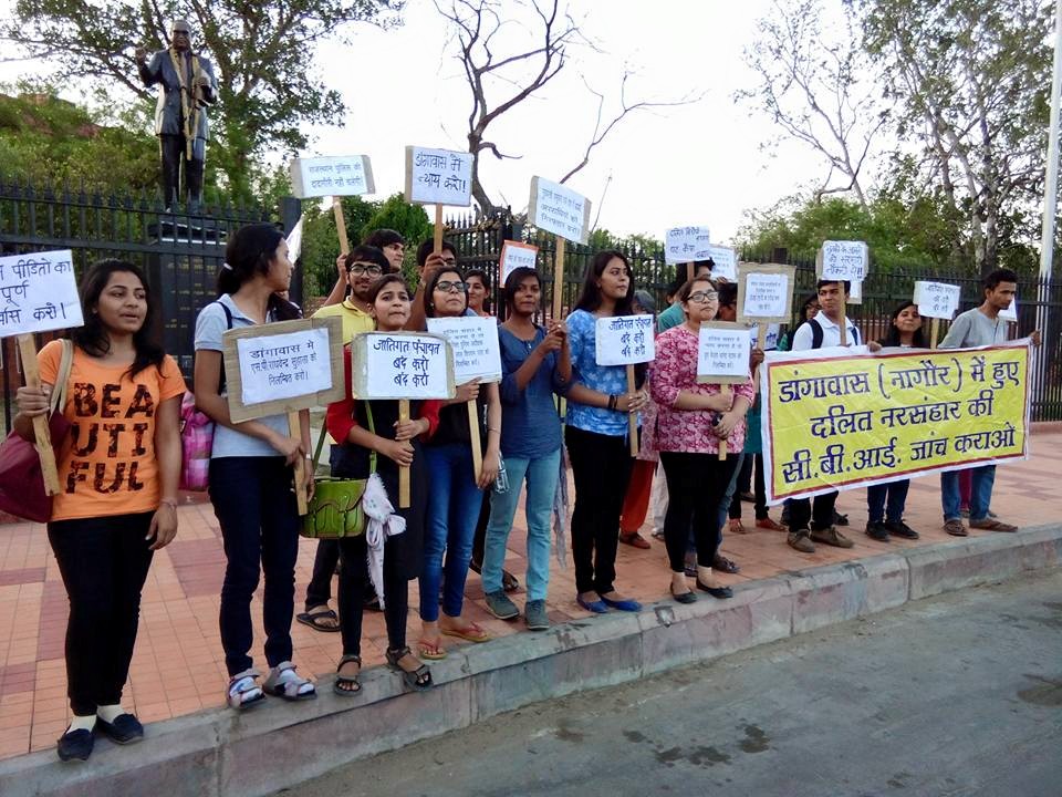 राजस्थान के जयपुर शहर में सामाजिक संगठनों के संयुक्त बैनर तले 27 मई को नागौर के डांगावास में हुए दलित संहार की घटना के विरोध में प्रदर्शन कर गृहमंत्री को ज्ञापन दिया गया;